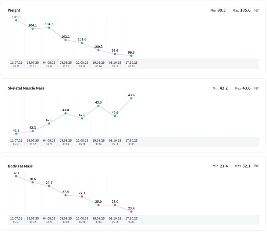 Below is data taken from the first 3 months of training. We did regular scans to keep him accountable and ensure he was on track.